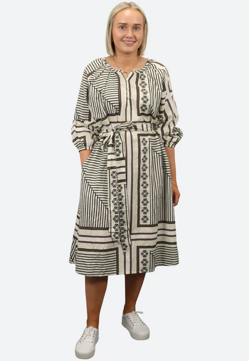 6292-21-S25 Easy Cotton Striped Tee Dress - White/Navy