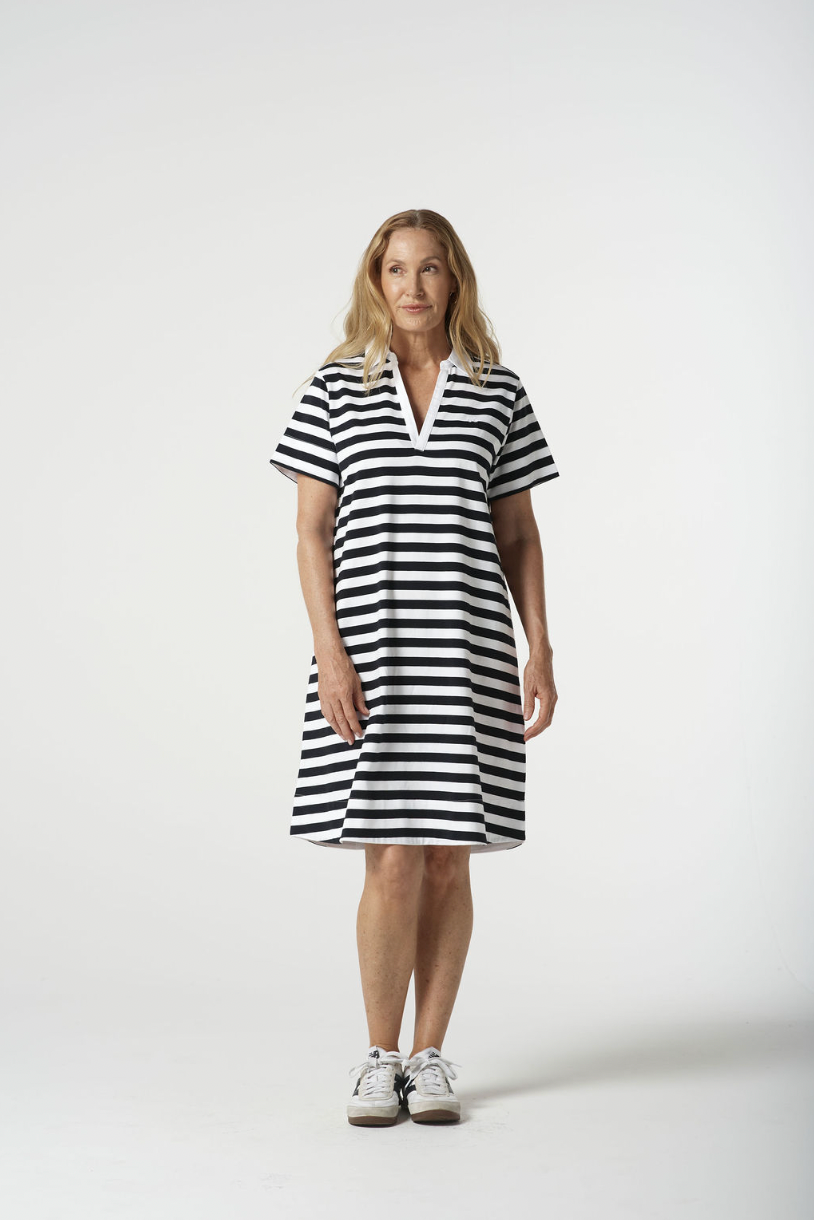 6291-20-S25 V Neck Cotton Polo Dress - Navy/White